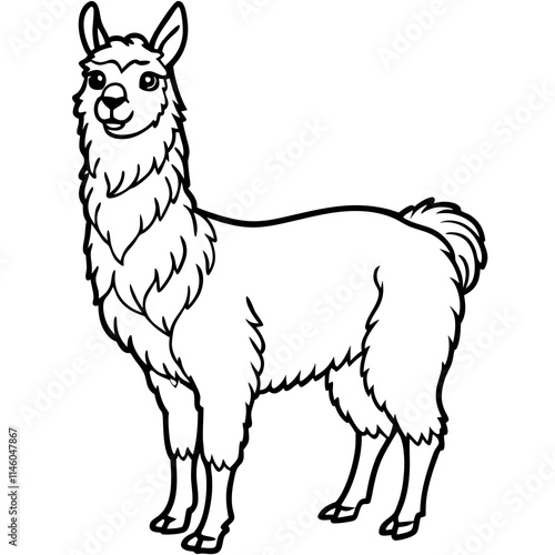 © Shahin reza, Fototapeta premium Cute Llama Silhouette line art black vector illustration
