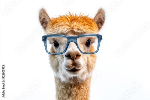 © Andrii Zastrozhnov, Fototapeta premium Cute llama wearing glasses against white background