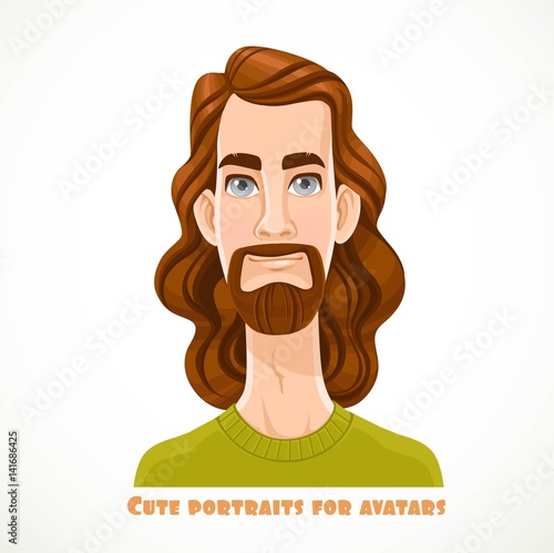 © Azuzl, Obraz premium Cute long haired bearded men portrait for avatar isolated on a white background
