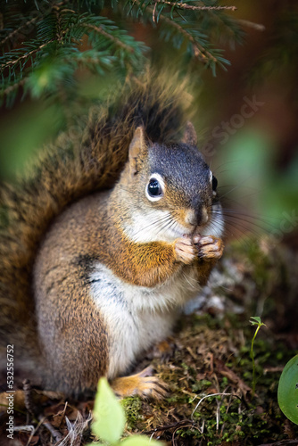 © PhotoSpirit, Fototapeta premium Cute looking close up squirrel portrait in the forest