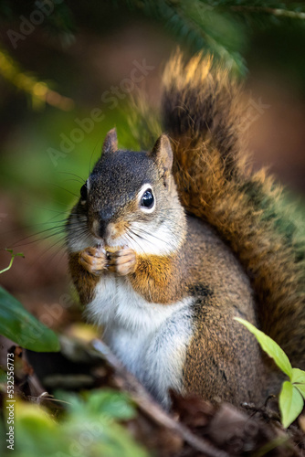 © PhotoSpirit, Fototapeta premium Cute looking close up squirrel portrait in the forest