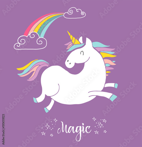 Fototapeta premium cute magic unicon and rainbow poster, greeting card