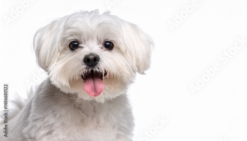 © Miguel, Obraz premium cute maltese dog sitting panting and looking at the camera isolated on white