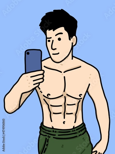 Fototapeta premium cute man cartoon on blue background