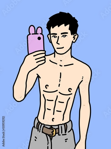Fototapeta premium cute man cartoon on blue background