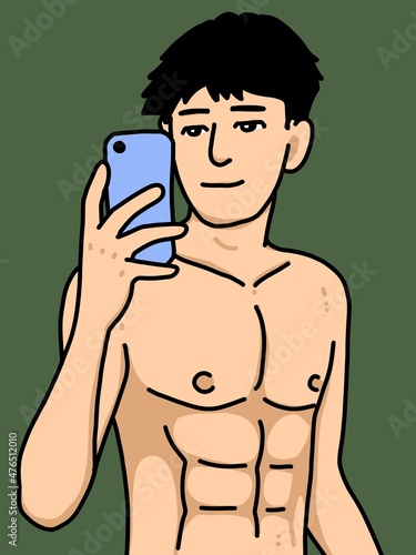 © mansum008, Fototapeta premium cute man cartoon on green background
