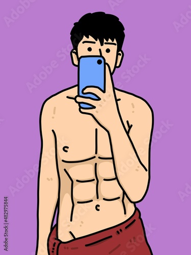 Fototapeta premium cute man cartoon on purple background