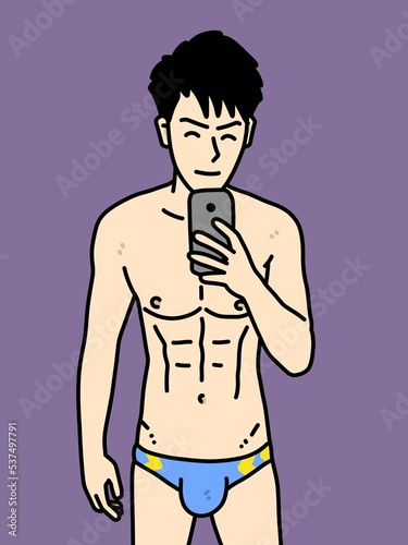© mansum008, Fototapeta premium cute man cartoon on purple background