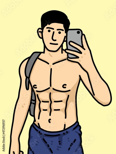 Fototapeta premium cute man cartoon on yellow background
