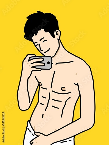 Fototapeta premium cute man cartoon on yellow background