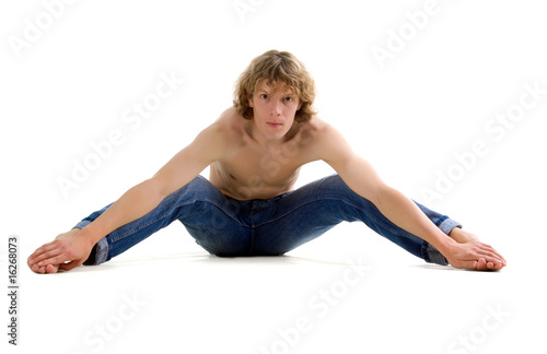 © tan4ikk, Obraz premium Cute man sit on the floor