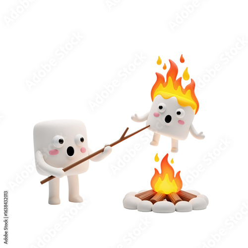 © Meheraj Hosen Mahid, Obraz premium Cute marshmallows roasting over a campfire isolated on transparent background