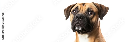 Obraz premium Cute Mastiff Dog with Perked Ears Sitting Against White Background