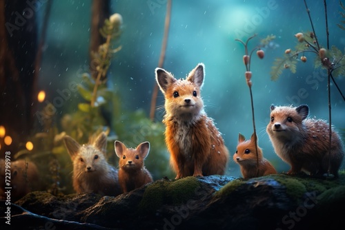 Obraz premium cute mini creatures in the forest generative ai