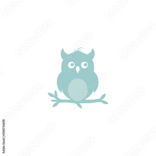 Obraz premium Cute Minimal Owl Sitting on a Branch – Flat Vector Illustration