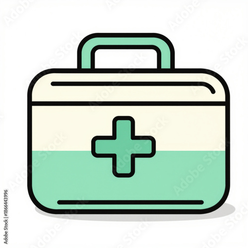 © GMeta, Obraz premium Cute Minimal Style First Aid Kit Illustration with Bold Outlines and Flat Colors