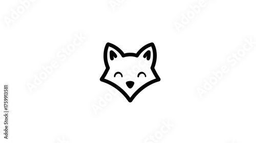 Fototapeta premium Cute minimalist fox head illustration, black and white line art vector graphic. Simple animal icon design.