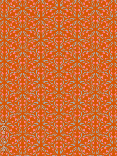 © Olga, Fototapeta premium Cute modest pink tulip flowers fabric print on an orange background