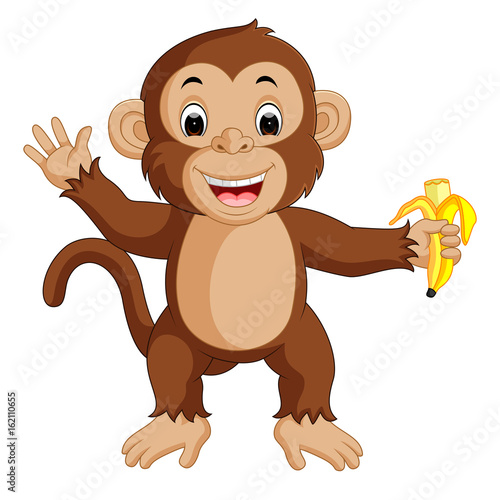 © hermandesign2015, Naklejka premium Cute monkey cartoon eating banana