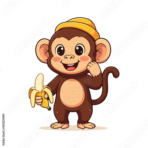 © mdshihabul, Fototapeta premium Cute Monkey Cartoon Vector Icon Illustration Animal Icon Cute Monkey Holding Banana Cartoon Vector
