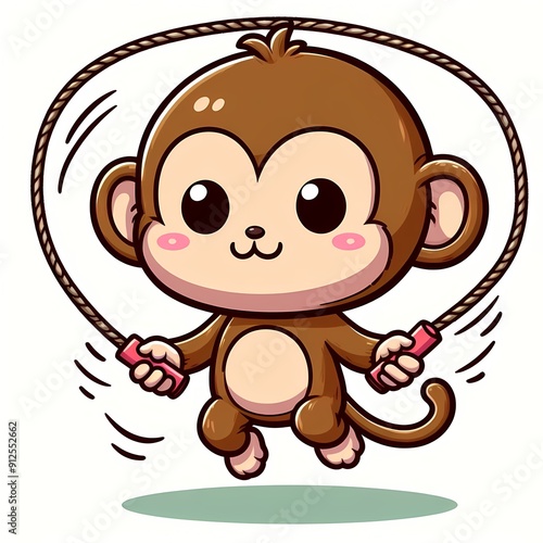 © HippoMonster, Fototapeta premium Cute Monkey Playing Jump Rope Cartoon Vector Icon Illustration