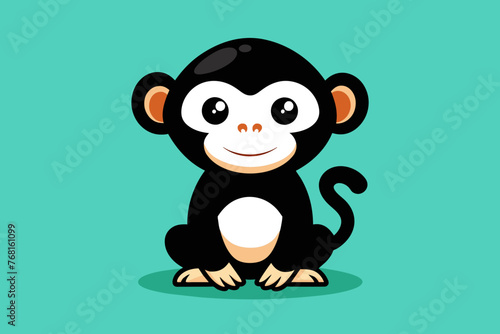 © AL, Naklejka premium Cute monkey sitting cartoon vector icon illustration animal nature icon concept isolated flat vector