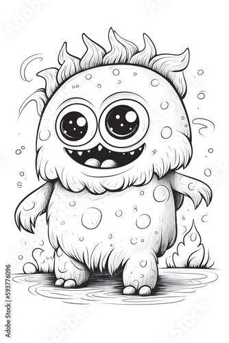 © Ilva, Fototapeta premium Cute monster, colouring page and book black and white,Generative AI Image.