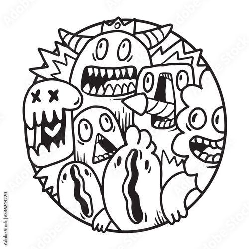 Fototapeta premium Cute Monster Doodle in Circle