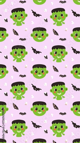 © Babang, Naklejka premium Cute monster Halloween pattern