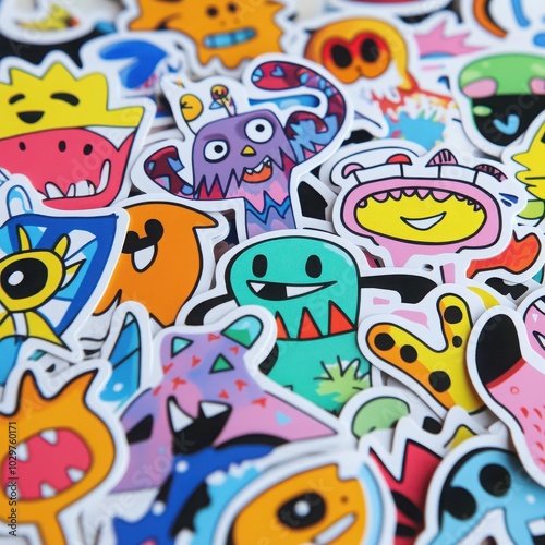© jakkrit, Obraz premium Cute Monster Stickers Collection