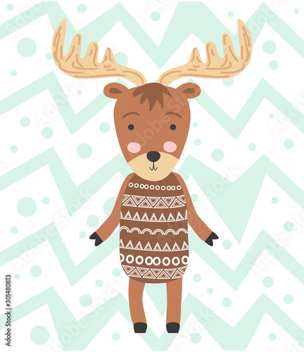 Naklejka premium Cute moose flat hand drawn illustration. Forest fauna. Zoo mammal. Elk clipart.