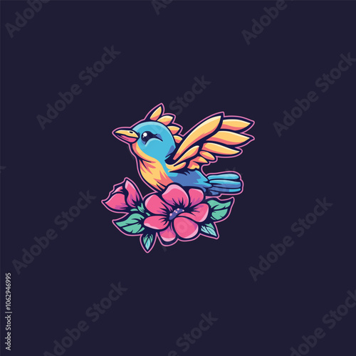 © Agatha, Obraz premium Cute nature bird logo icon design template flat vector