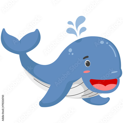 Obraz premium Cute Ocean Blue Whale Sea Animals Illustration