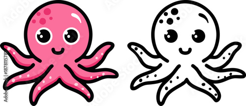 Obraz premium Cute Octopus Cartoon Vector Illustration