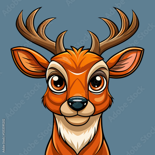 Obraz premium Cute Orange Deer with Antlers Cartoon Portrait, orange deer, cartoon...