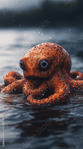 Obraz premium Cute Orange Octopus Emerging from Water