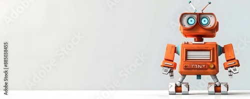 Fototapeta premium Cute orange robot with blue eyes standing in a minimalist setting. Perfect...