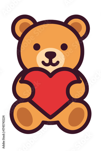 Obraz premium Cute orange teddy bear vector illustration embracing a vibrant red heart,...
