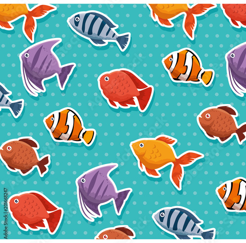 © Gstudio, Naklejka premium cute ornamental fish pattern background vector illustration design