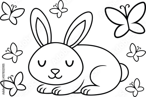 Obraz premium Cute Outline Bunny Surrounded by Butterflies on Transparent BG