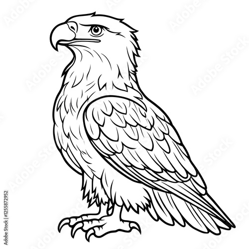© LookChin AI, Obraz premium Cute Outline Drawing of a Cartoon Eagle for Coloring or Design