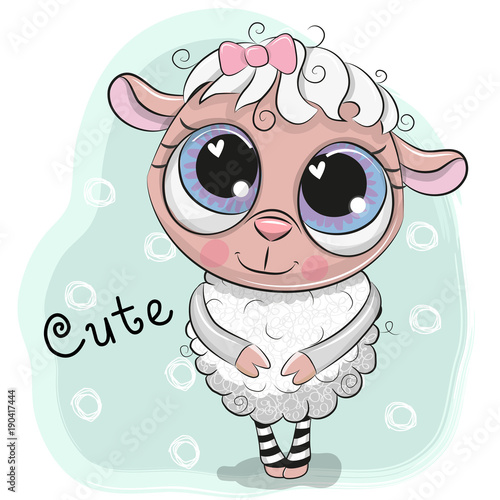 Obraz premium Cute owiec dziewczyna na niebieskim tle