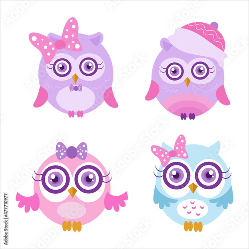 © EzhmaStudio, Fototapeta premium Cute owl illustration character collection 4