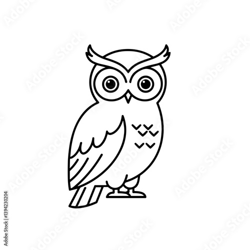 Fototapeta premium Cute owl illustration in a simple line art style on white background