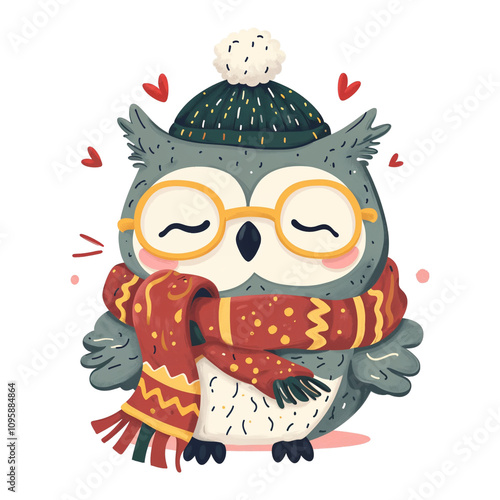 Fototapeta premium Cute Owl in Winter Hat and Scarf Illustration