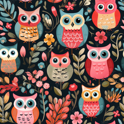 © Roman, Naklejka premium Cute owl simple childish repeat pattern