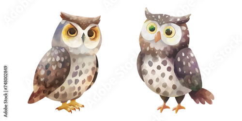 © Finkha, Obraz premium cute owl watercolour vector illustration