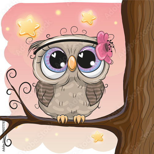 Obraz premium Cute Owl with flower on a brunch