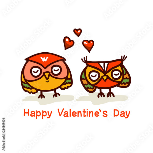 © Chistoprudnaya, Obraz premium cute owls couple valentines day vector hand drawn illustration
