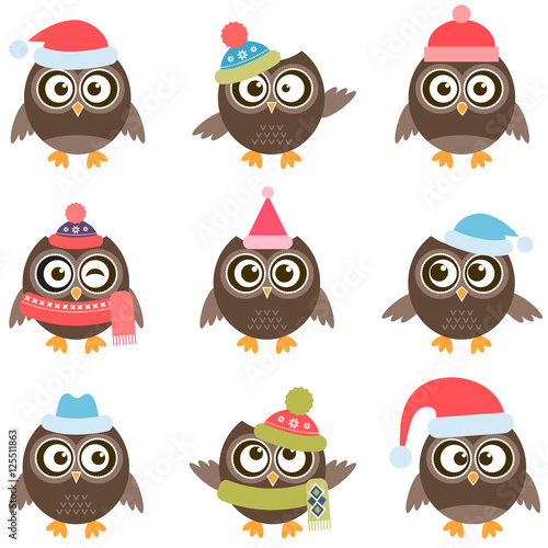 © ann_precious, Fototapeta premium Cute owls with Santa hats